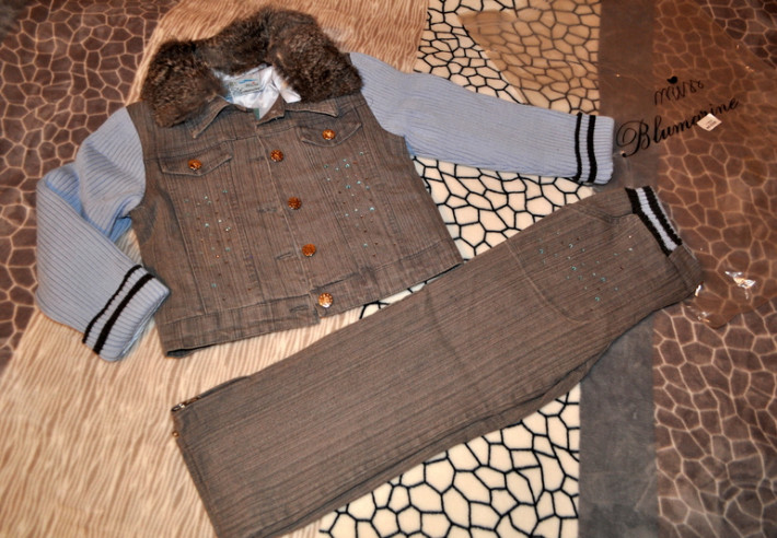 Красивый, теплый, а главное практичный джинсовый комплект BLUMARINE. Размер 4. Большемерит. Заказывала на Амазоне, на расспродаже бренда. Приехал на "американский" манер, большой. На худого ребенка не подойдет.)))