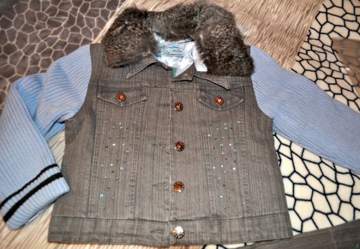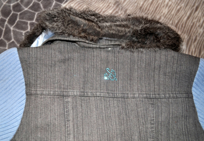 ДЕТСКИЙ БУТИК новое. 3-6 лет. Джинсовая ткань с небольшим стрейчем. Отстегивающийся воротник из натурального меха. Помимо пуговичек края мехового воротника фиксируются тесьмой, которая накидывается на основной воротник куртки. На груди два кармана на пуговице. Россыпь страз голубых и белых разного размера.