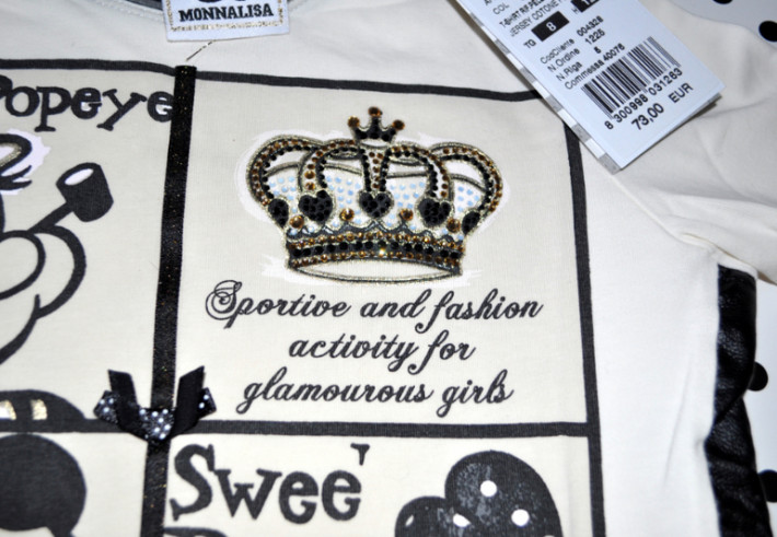 Платье - туника Джерри. Тепленькое. Маркировка 7 лет, рост 122 см. Очень красиво сидит на ребенке - но брала бы с запасом, чтобы подлиннее было (ИМХО). 100% cotton. Цена Моналисы 83 евро, сейл 2500 рублей.