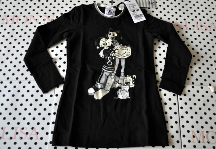 ДЕТСКИЙ БУТИК новое. 3-6 лет. Еще одна Оливия, другой модели, приталенная и длинная. Цвет черный. Размер 8 лет, рост 128см. Украшена стразиками. Цена Моналисы 71 евро, сейл 2100 рублей. 100% cotton.