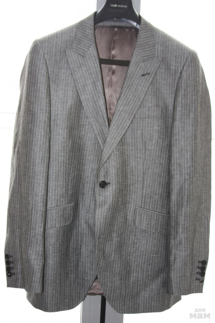 Состав 53%лен и 32 % шерсть.Благородный серый цвет в белую тонкую полоску!