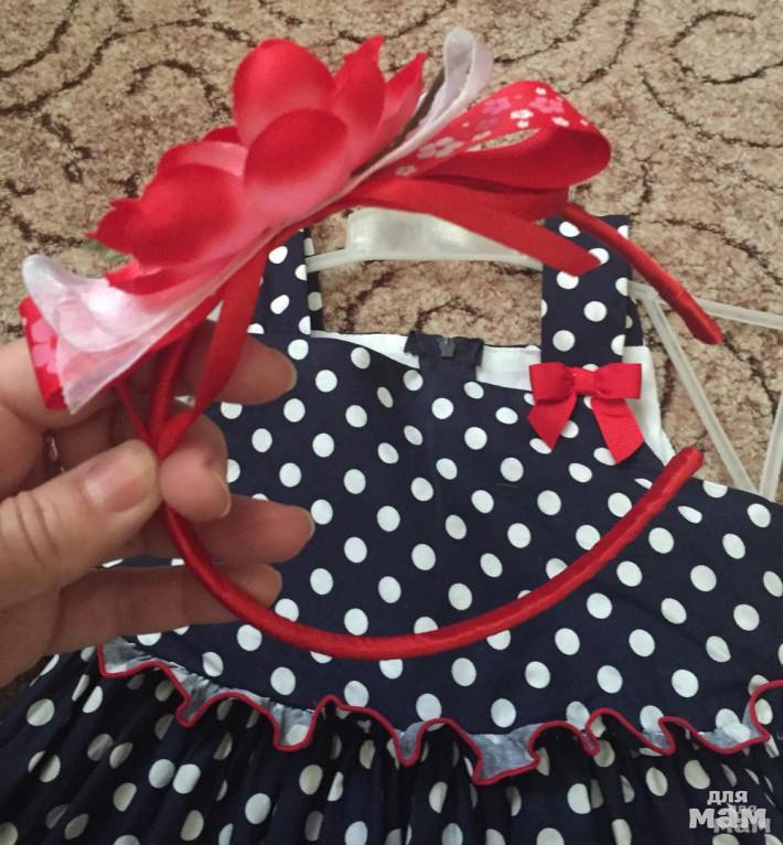 Сарафанчик очень красивый Бони Джейн (заказан из Америки) синий в горох на 110-116 700р есть ободок к нему ручной работы 200р