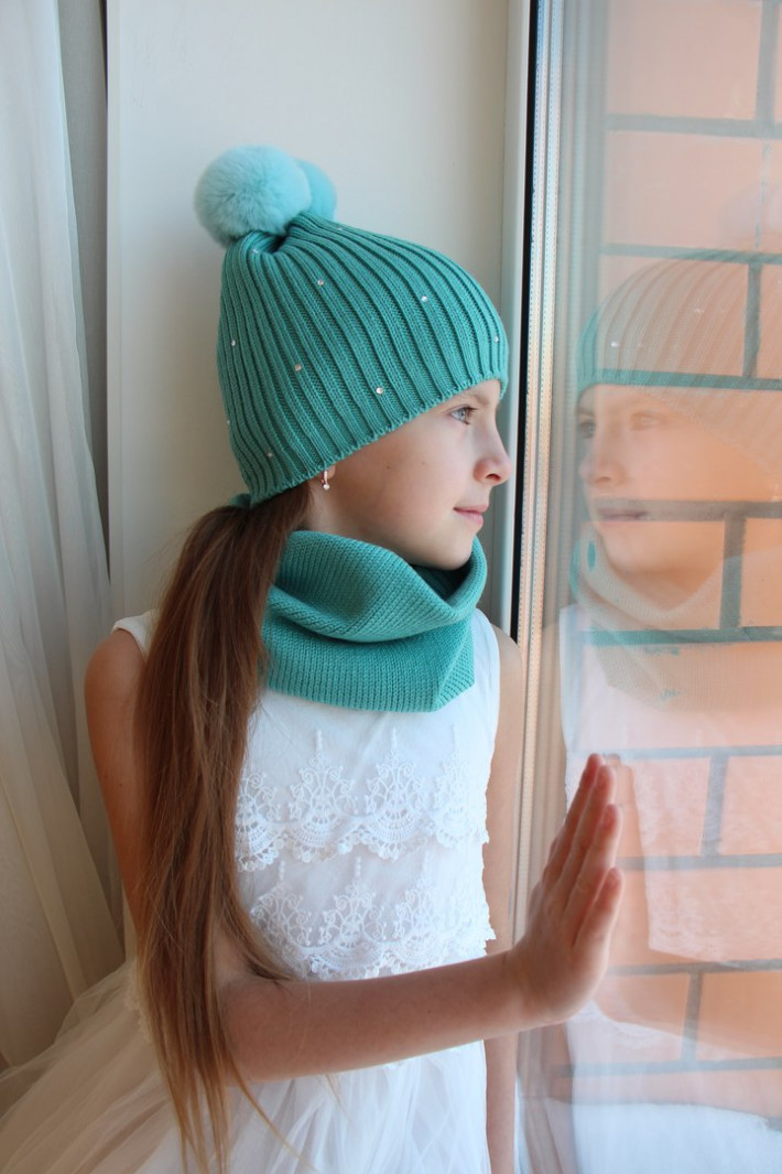 Комплект в продаже. Итальянский меринос суперфайн, стразы Сваровски, кролик-рекс. Размер 53-55 см. Шапка цена 1800 руб, снуд 1400 руб.