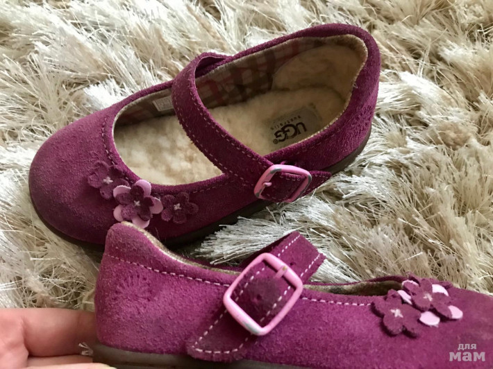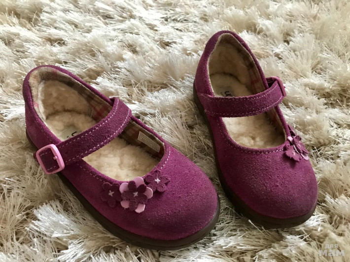 Туфли UGG, 25 р, б/у неактивно, только на сменку, меховая стелька не вынимается, 15 см, покупала в США, есть потертости на носах (небольшое изменение цвета замши) и застежке, все есть на фото, при носке совсем незаметно. широкие, удобные для деток.