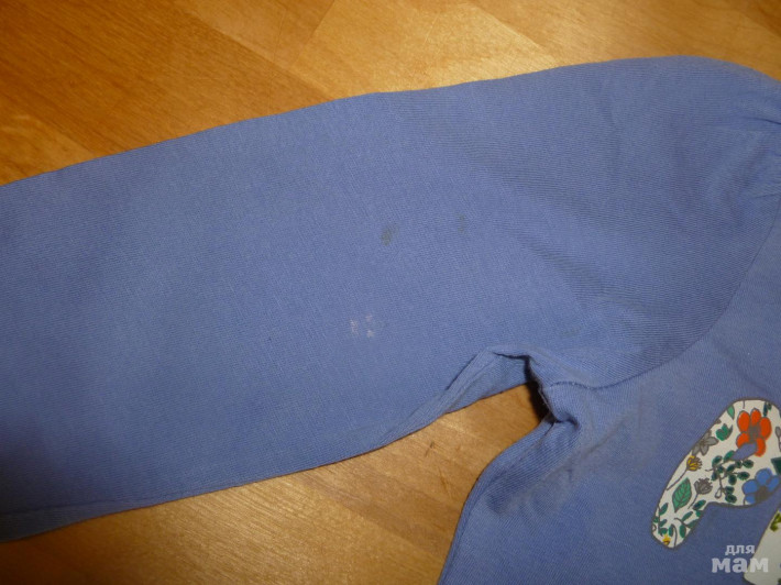 6. Лонгслив Mothercare, размер 92. Рисунок выложен пайетками. Есть пятнышко. Цена 100 руб.