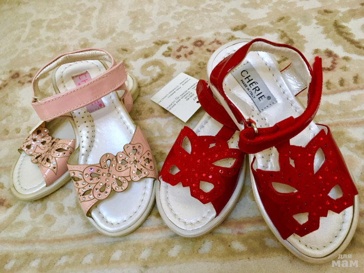Нежно розовые - лаковая кожа. Красные - лак и замша. Стразы на обеих парах сверкают.