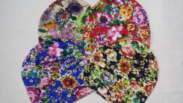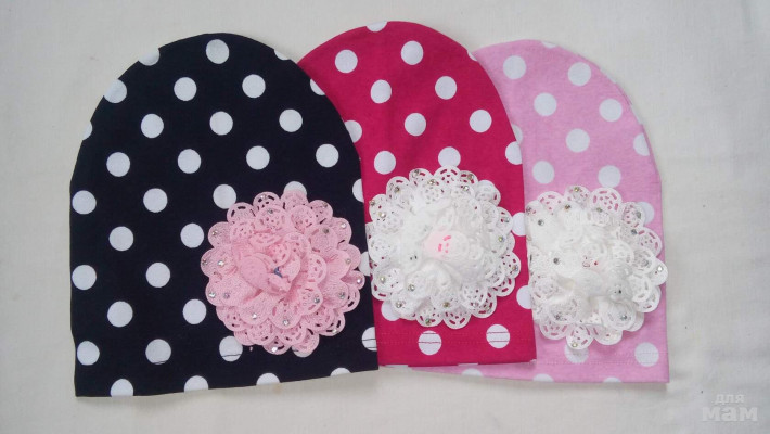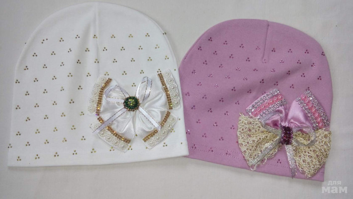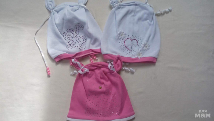 шапочки трикотажные размеры уточняйте, по цене одинарки 150, двойные 200, с ручной работой и стразами 250