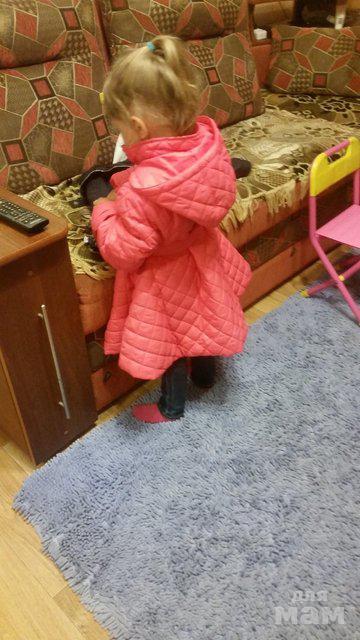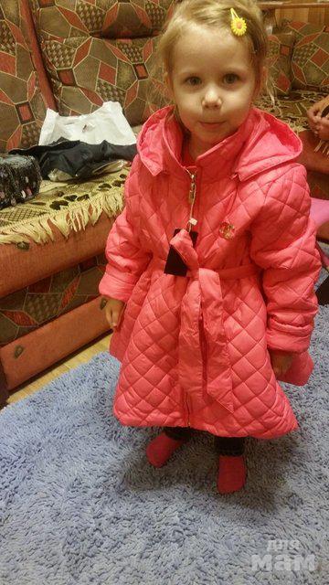 Стильное весеннее пальтишко Chanel для модницы. Наполнитель - тоненький синтепон. Мягенькое и комфортное для ребёнка, но мы ошиблись с размером, скорее на 116, Рукав 44 длина 52