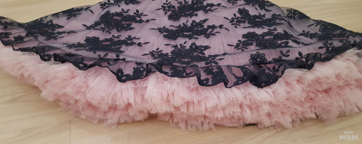 Очень нежное и красивое платье. Пышная, многослойная юбка. Состояние хорошее! Стразы все на месте. Сзади завязывается на бант. Платье не в пол!