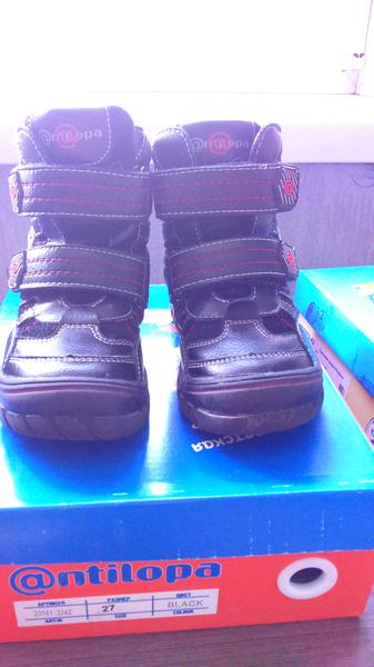 Ботинки @ntilopa 27 размер. В идеальном состоянии после 1 ребенка. На липучке очень удобно для ребенка обуваться в садике. Нат. кожа, нат. мех.