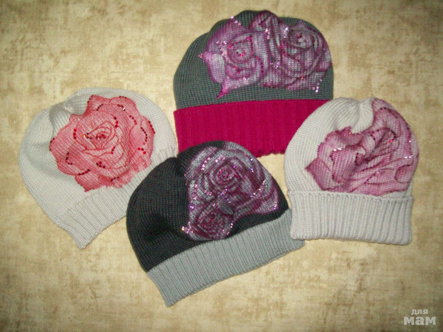 розовая с напылением и камешками 52-55+ 1300 (ушки можно) продано