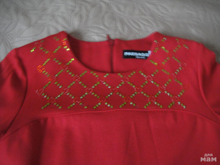 Итальянское платье с длинным рукавом ф.Paesaggino. кристаллы Сваровски. Цвет спокойный красный. Не хватает двух страз, но совершенно не видно. Больше изъянов нет. Сзади на молнии.