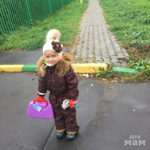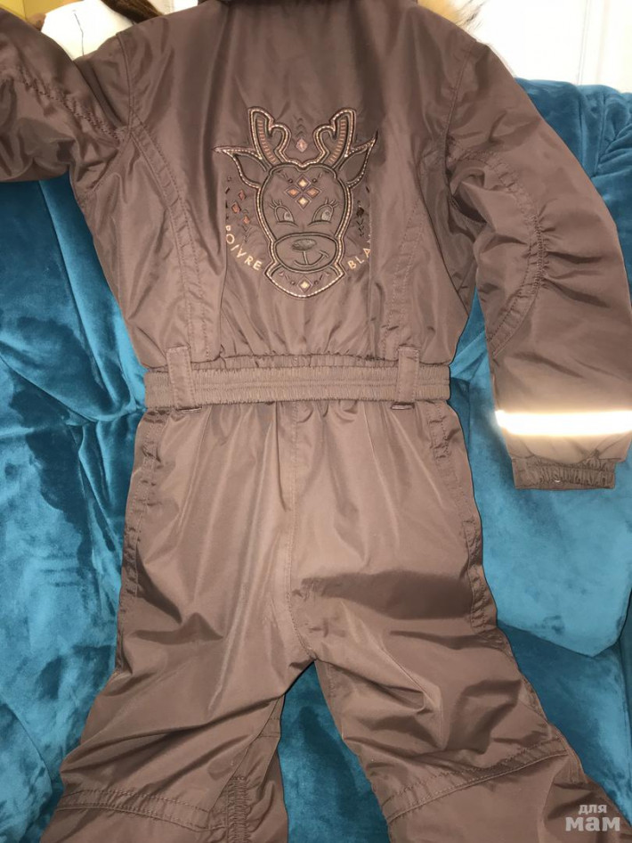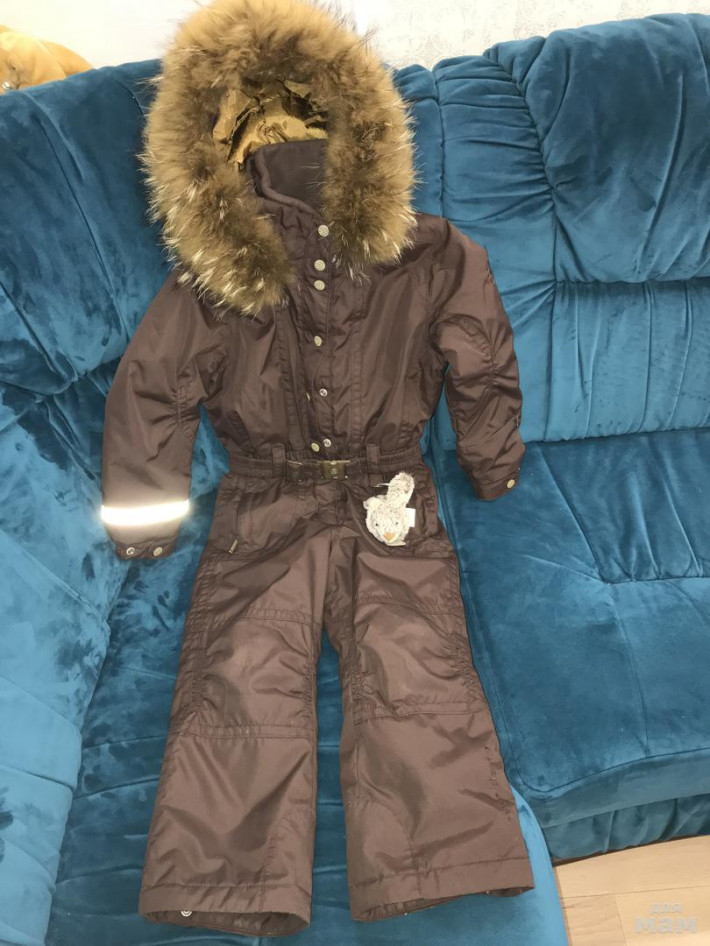 Комбинезон Пуавр маркировка 5 коричневого цвета с натуральной опушкой . Есть небольшие недочеты, но они мелкие . Все подробные фото сделала!!! Продаю вместе с шапкой из мериноса молочного цвета с норковым цветком и меховым помпоном.
