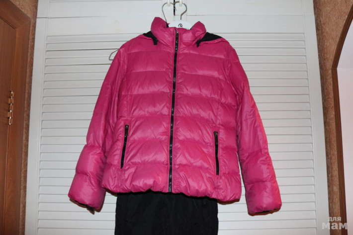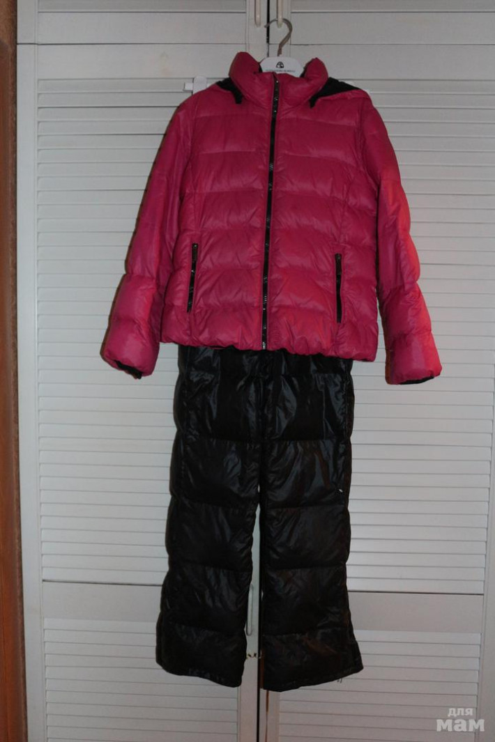 Комплект ношен активно!!! наш самый любимый!!! курточка в полне хорошем состоянии, цвет розовая фуксия, молния в идеале, легкий комфортный пуховичек!!! Штанишки более пострадали, есть потертости, шероховатости на коленях, есть небольшая дырочка ( при стирке дальше не расходиться, как зацепили так в том же состоянии и " живет". Пуавр штанцы отдам в довесок к комплекту)))