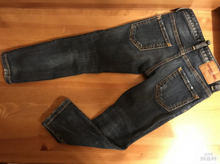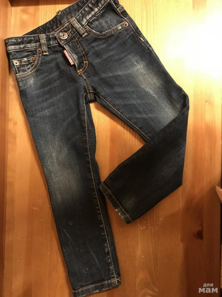 Джинсы Dsquared2. Маркировка 4. На худеньких деток. Сначала сидят как обычные прямые джинсы под ремень, по мере роста «превращаются» в модель слим. Все потертости оригинальные. В бутике 16000₽ Состояние идеальное. Цена 3000₽ с почтой.