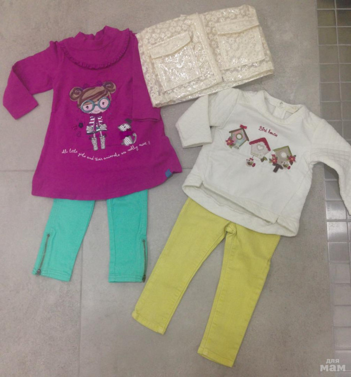 Все вещи в отличном или хорошем состоянии, без дыр и пятен! Плащ Зара одет пару раз, скини Зара в отличном состоянии, туника Майорал без нюансов, толстовка Майорал - состояние не новой вещи,но заметных нюансов нет, джеггинсы новые, платье Minnie копия Моннализы в идеале.