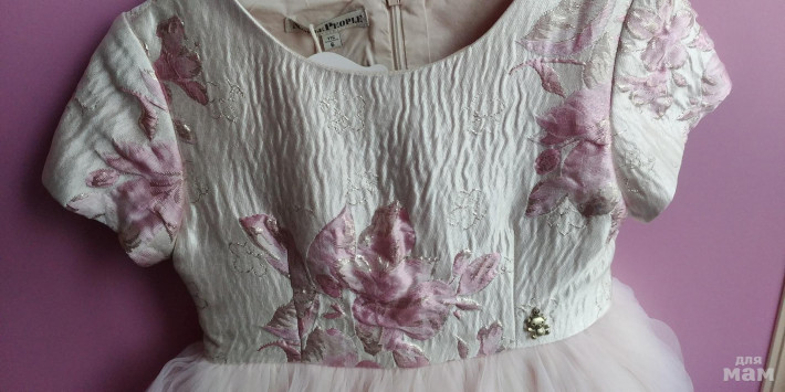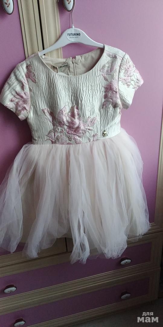 Платье новое в размер. Дочке не подошел размер. Хорошо будет смотреться на нормальной и пухленькой девочке.