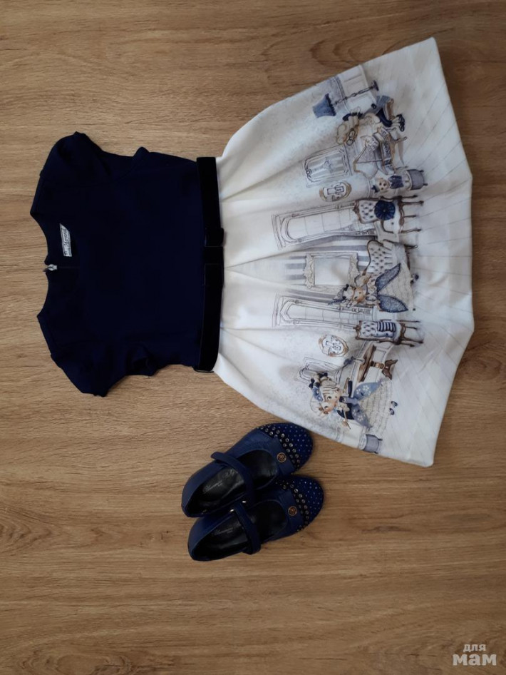 Продам платье Mayoral 4 р., цвет синий (барокко), мы ходили в 3.5 г., состояние идеальное.