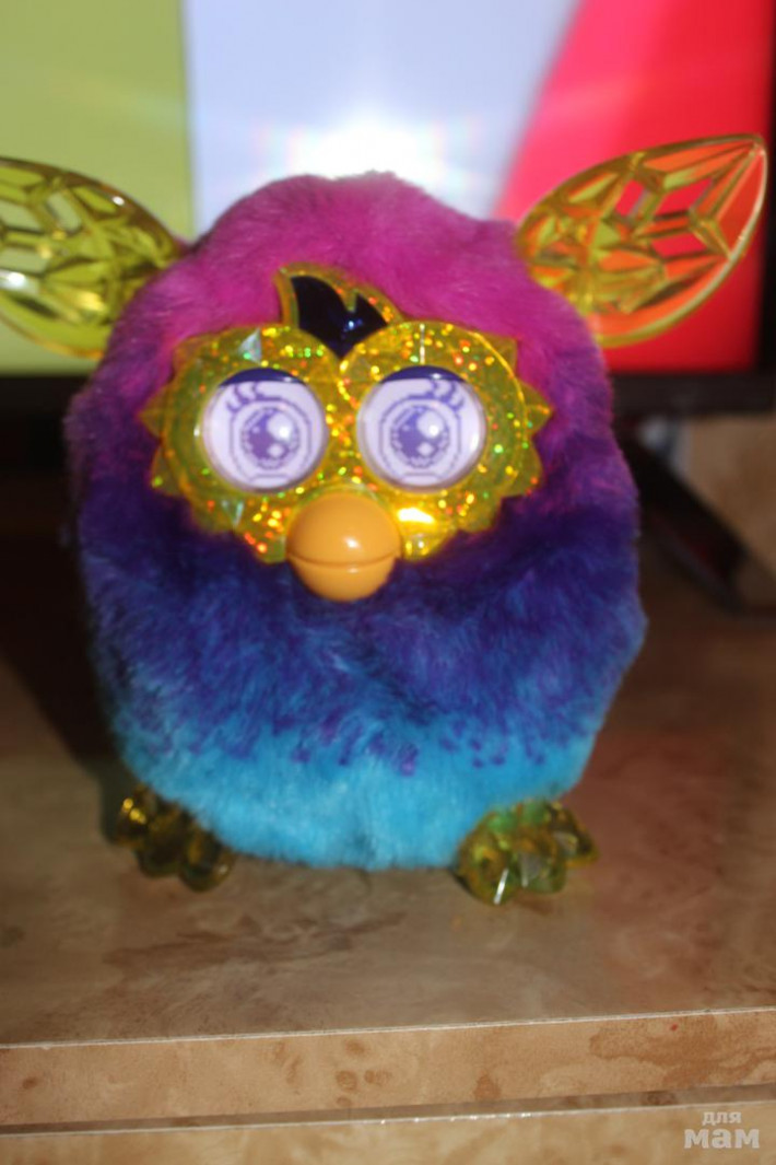Ферби бум кристал,подарили дочке на НГ поиграла 2 дня,интерес не вызвал,речь-русская,характер меняется в зависимости от обращения с ним.