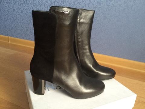 Новые Брендовые ботинки (ботильоны, полусапоги) Nando Muzi. Италия. 39р. демисезон. натур. кожа, замша. цвет черный. удобный, средний, устойчивый каблук. красиво украшены зеркальной вставкой с логотипом. кожа гладкая, на голенище симпатичный метал. логотип. на молнии. легкие, удобные и стильные! в коробке. стоили ок. 28000, продам за 15500. Новая цена 13500
