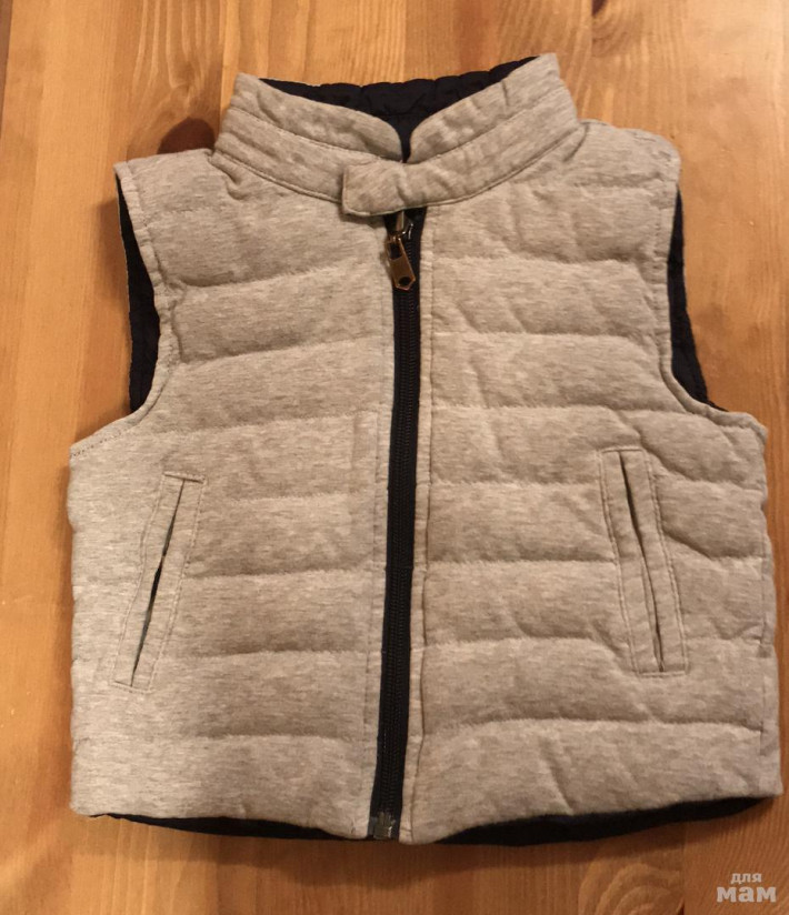 Жилет двусторонний. Внутри пух. Немного маломерит. Отличное состояние.