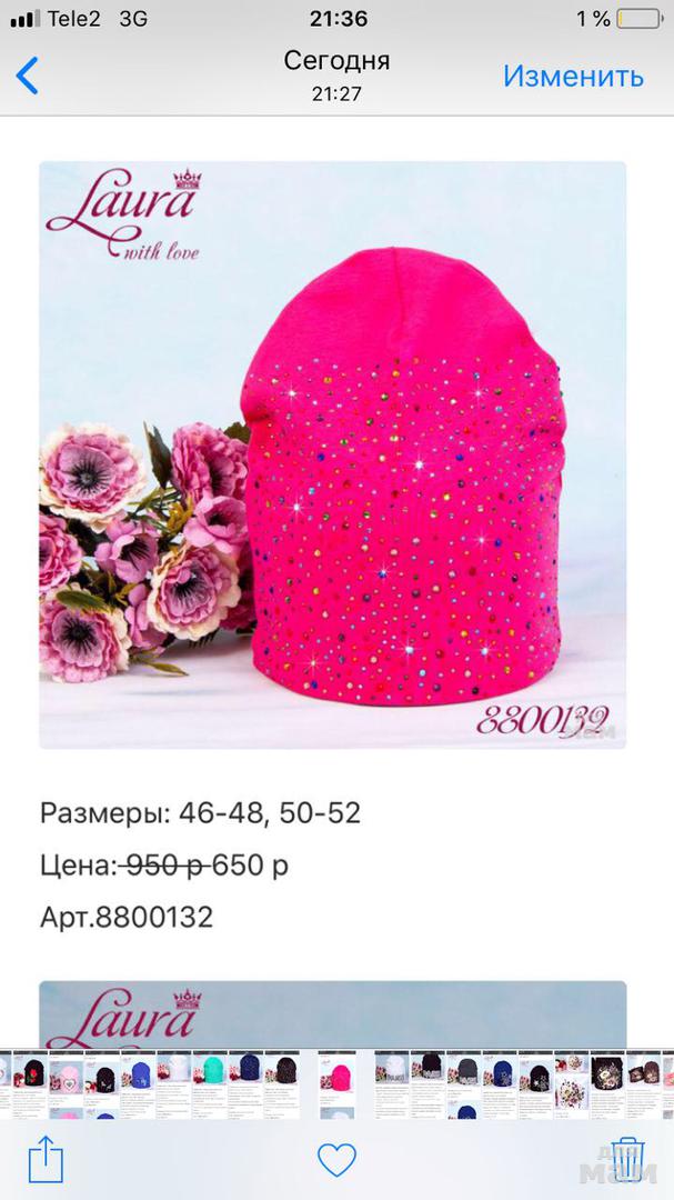 Эффектная, трикотажная шапка для девочки Laura. ХИТ сезона!
