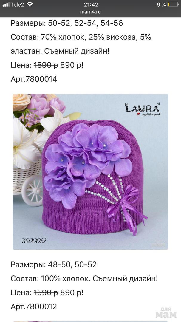 Весенняя шапка для девочки Laura