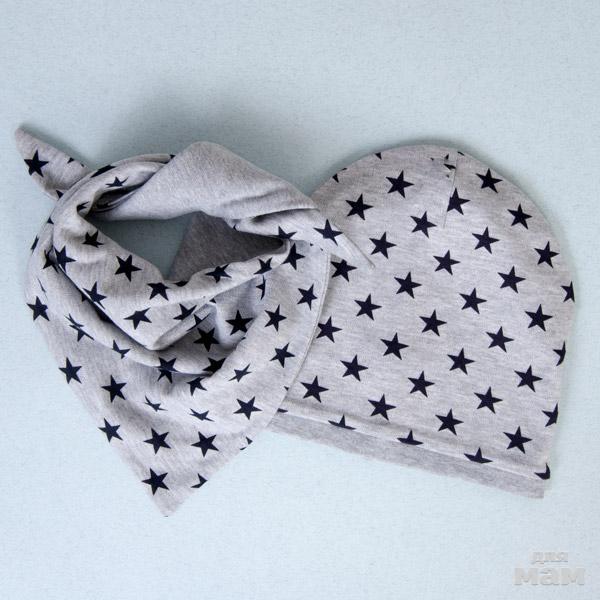Шапочку украшает модная аппликация в виде звезд разной фактуры и размера. Они выполнены из блестящего глиттера, эффектного бархата и обрамлены стразами.