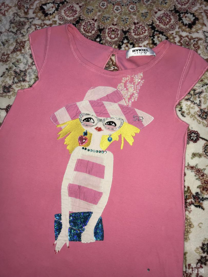 Очень яркое, мягкое и красивое платишко! Этикетка срезана, помойму размер 6 лет. Лучше по замерам смотреть! Не хватает немного страз, а так в хорошем состоянии!