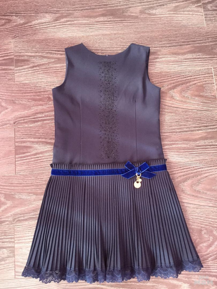Доброй ночи! В размер, у нас к сентябрю было 124 было отлично, сейчас просто стало чуть короче, талия в нем четко не выделена поэтому достаточно долгоиграющее, давайте я вам грудь и длину померию проще так сориентироваться