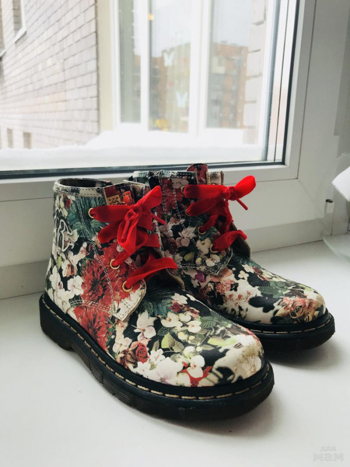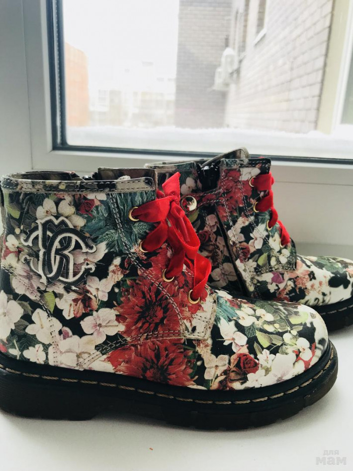 Сапожки на девочек сезон весна/осень, оригинальные! Следы носки видны только на носочках, но из-за цветочного принта не очень заметны,