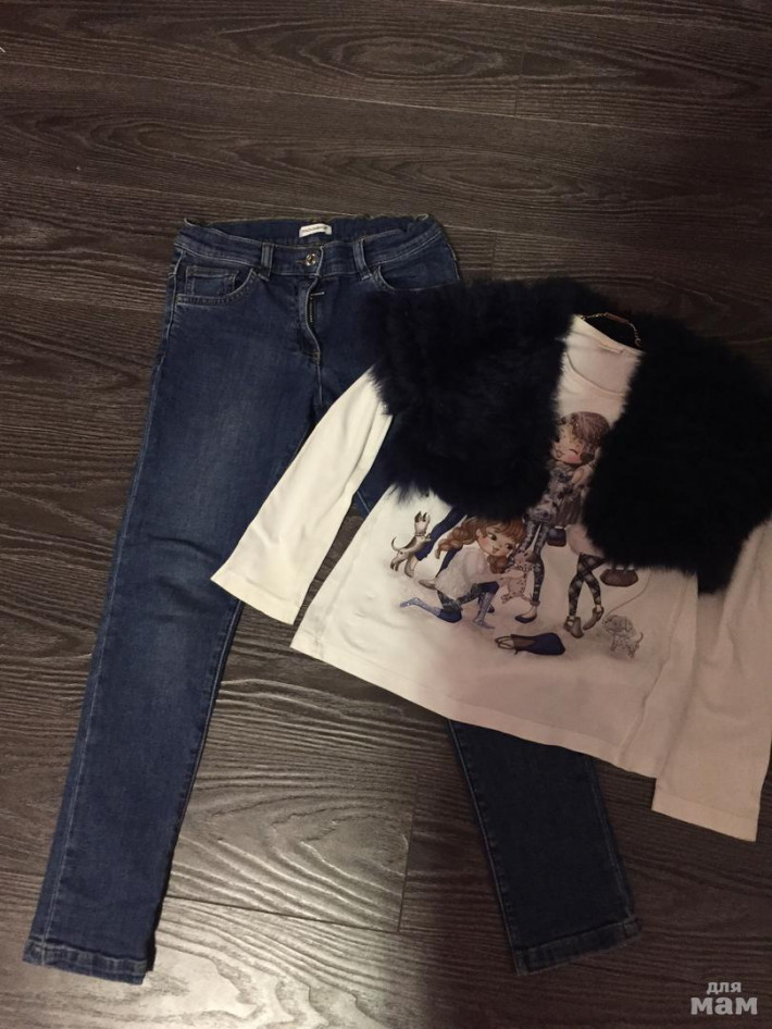 Джинсы в очень хорошем состоянии маркировка 8 лет, можно раньше 1700. Болеро из натурального меха, состояние отличное подойдет с 6 и до 8 1600 руб. Вместе 2900.