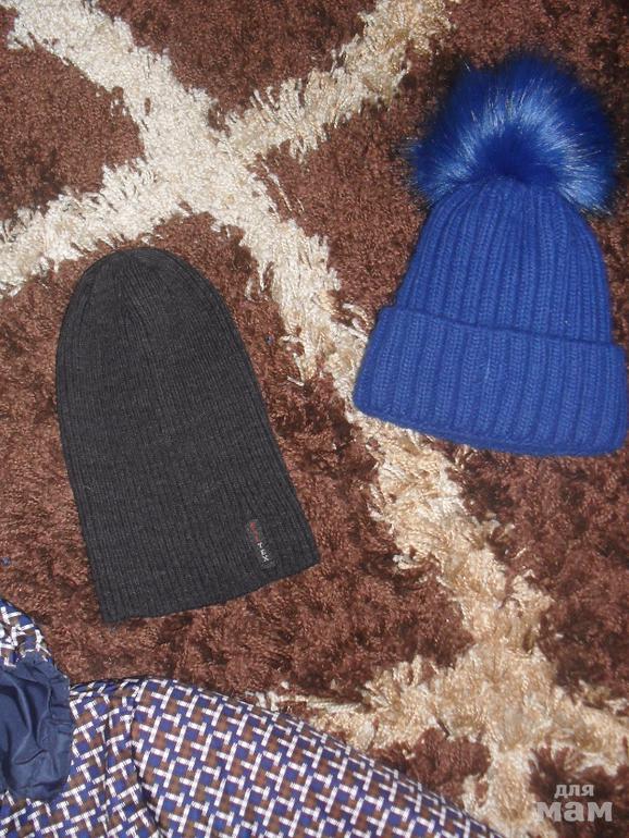 Шапки: серая - новая (размер единый) 300, синяя - состояние отличное (мех не натуральный) на флисе. 300