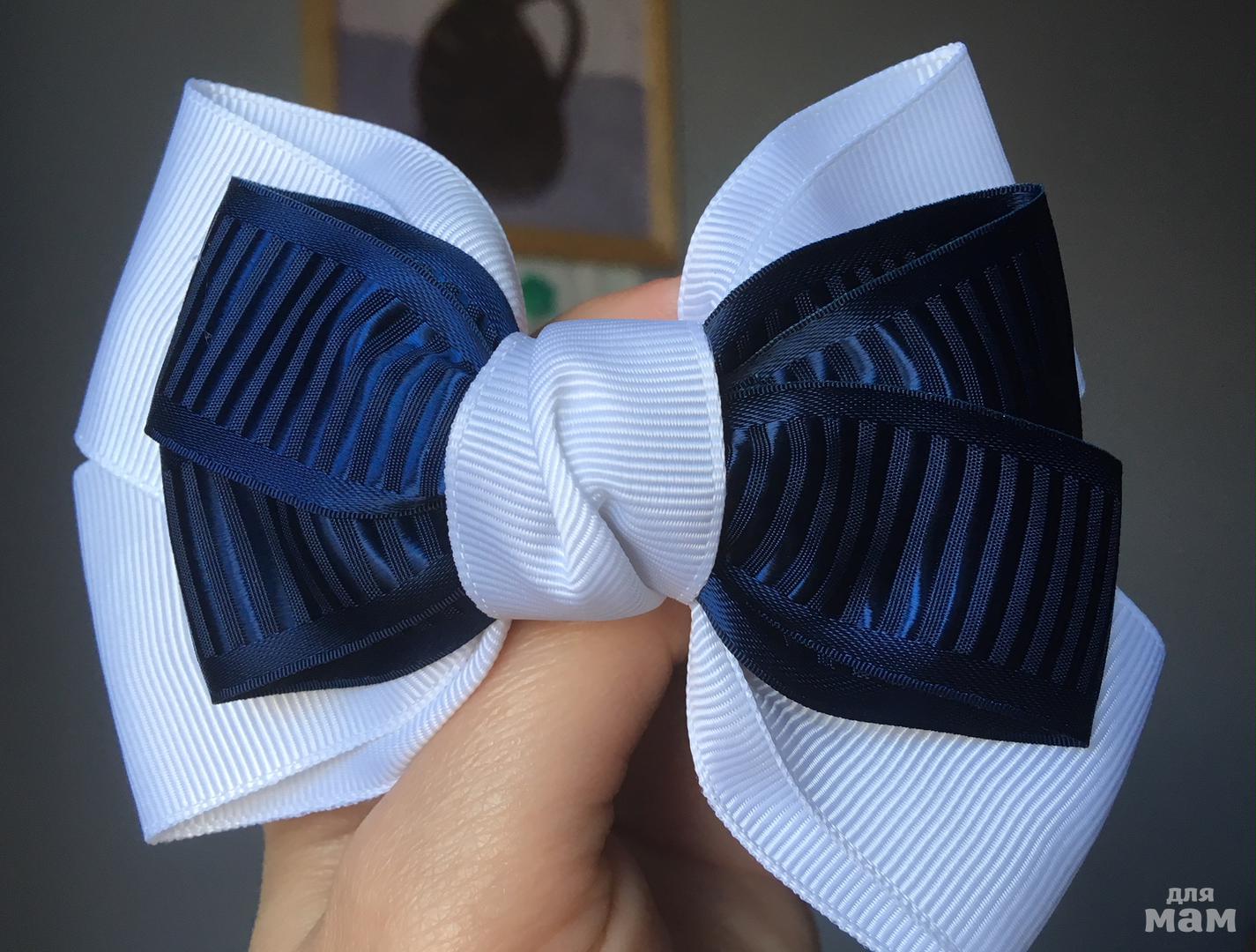 54. Очаровательный бант для девочек школьного возраста, на мягкой резинке, диаметр изделия 12см, синий и белый