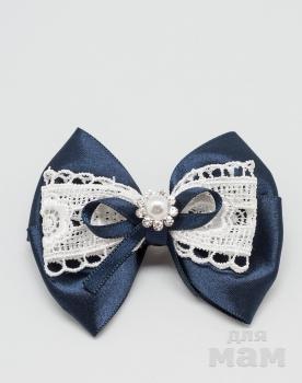 Очаровательная заколка-бантик для волос, на зажиме, парная. Изготовлена из атласной и кружевной ленты. Длина 10 см.