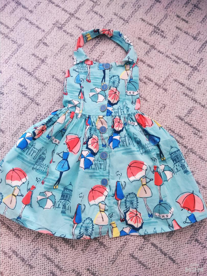 Р. 128 (8 лет), подойдёт на любую комплекцию (сзади резинка), Спинка открыта.