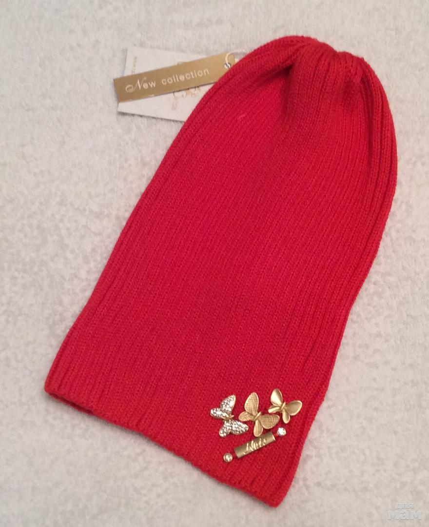 Хлопковая шапочка-чулок, украшена бабочками, одинарная вязка