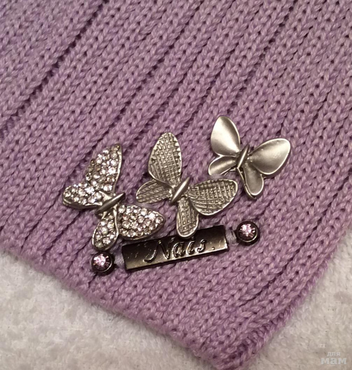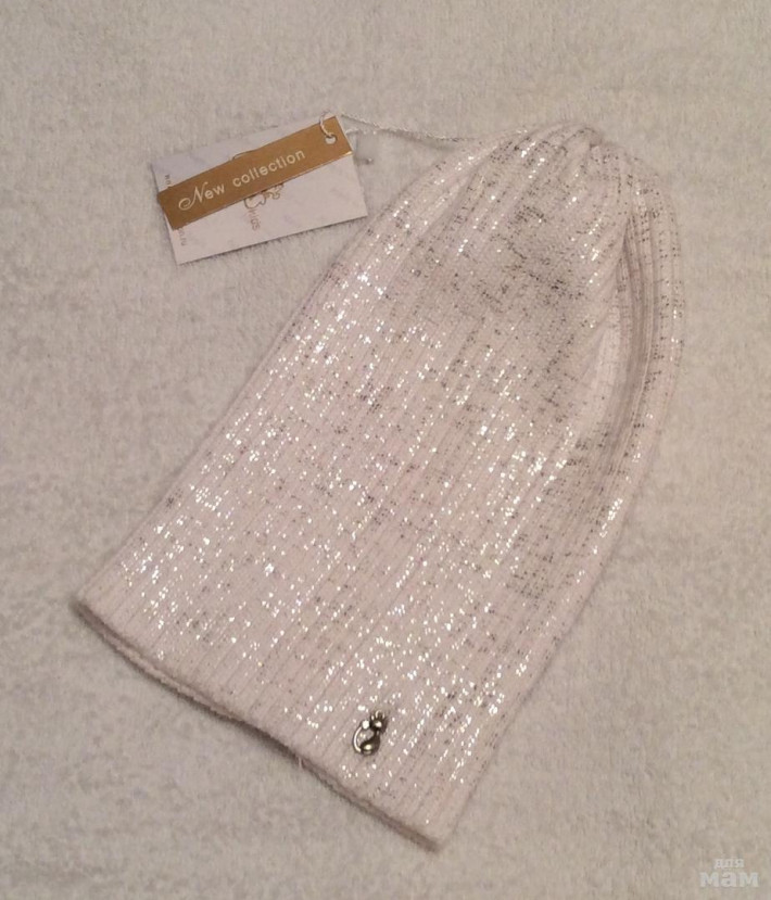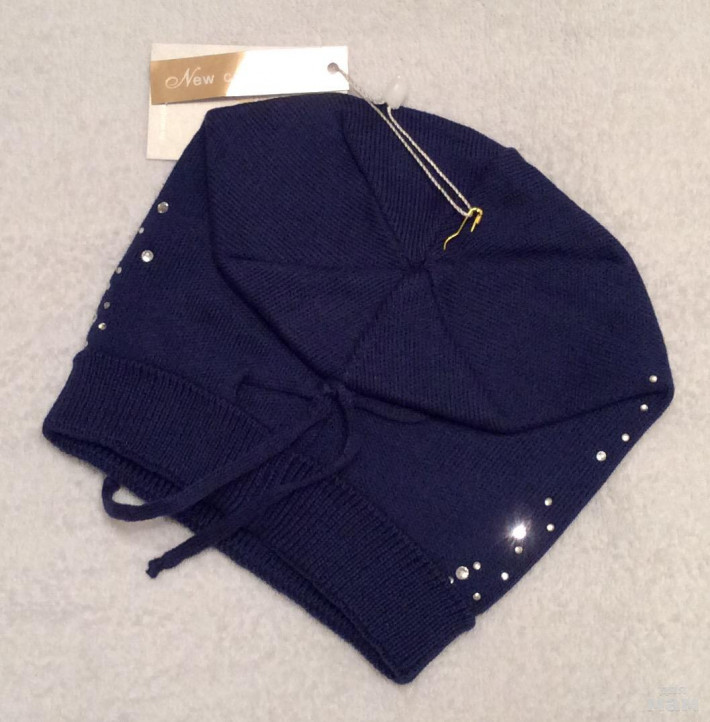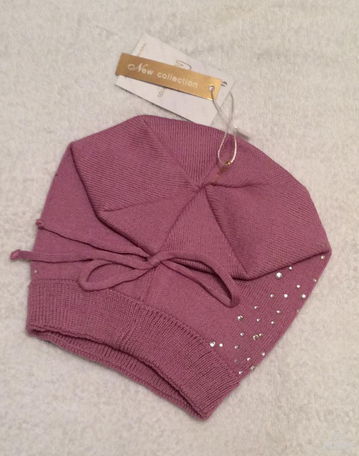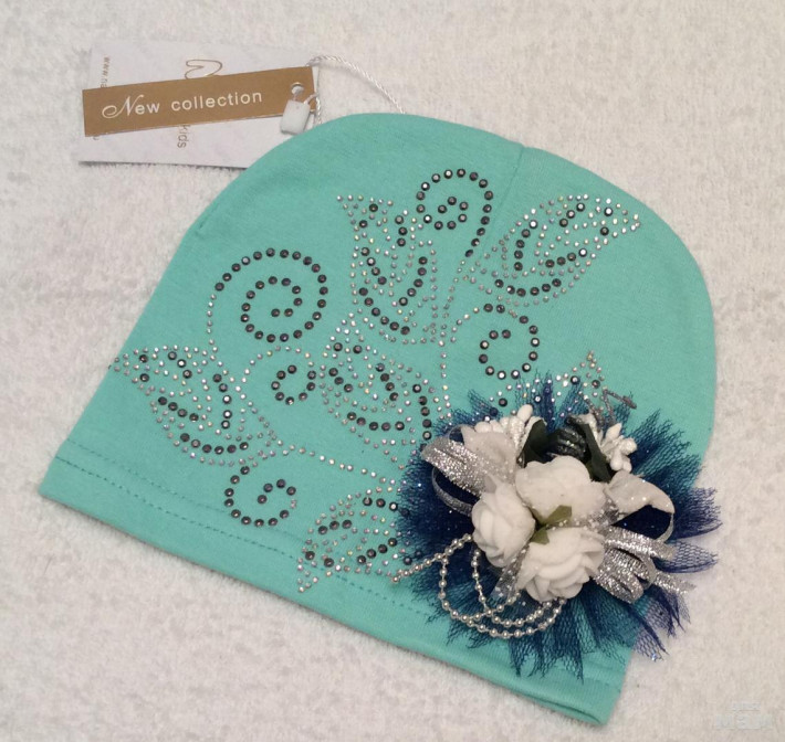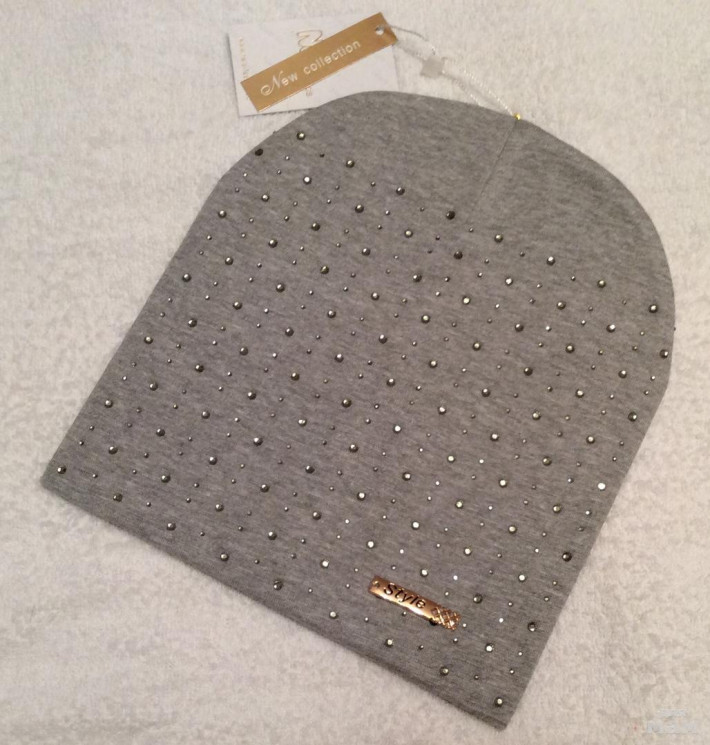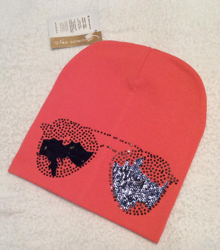 Плотная хлопковая шапочка, очень красивая посадка, за счет загиба сидит очень аккуратно,стразики все сверкают
