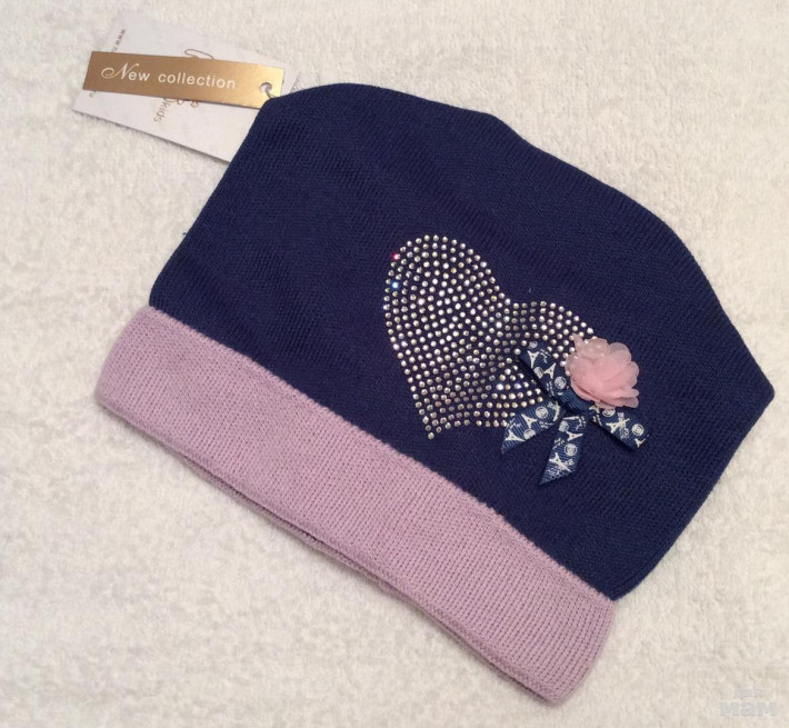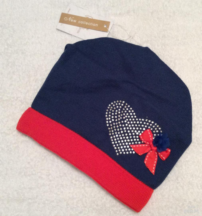 Красивая шапочка, хлопок, сидит аккуратно, плотная вязка, сердце выложенно стразами , все переливается.
