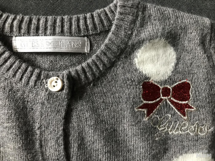 Кардиган Guess. Размер указан 2 года, но большемерит. На мой взгляд, спокойно до 4-х. Рукава отворачиваются. Очень хорошо с пышными юбками, когда лишняя длина свитера мешает. Горошки из ангоры. Мягкий, неколючий. Очень миленький. В отличном состоянии