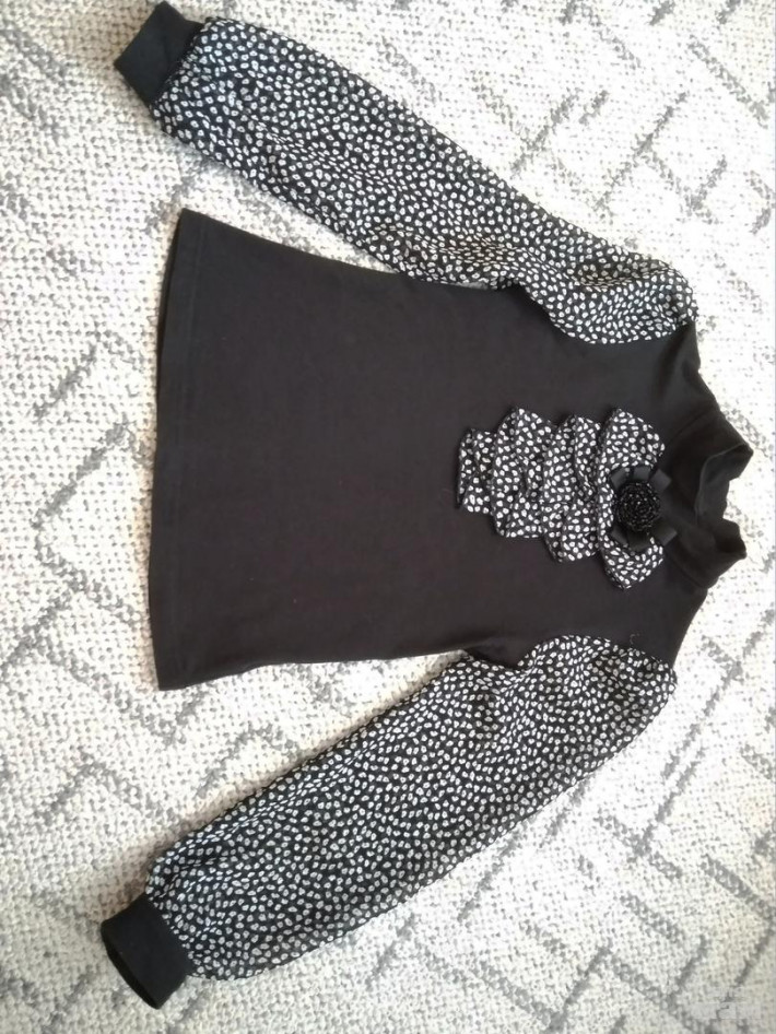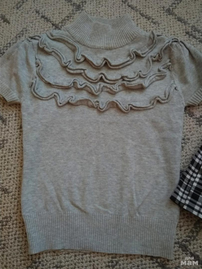 10.блузочка трикотажная, Брошь съёмная, очень красиво смотрится на самом деле, Р. 128, но и при росте 140 на худенький девочке рукава не смотрятся короткими - ц. 300 Р.
