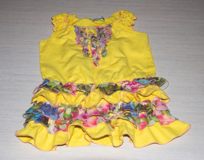 6. Сарафан Sermino (Турция). Состояние идеальное. По размерности на этикетке стояло 80см, но когда достали и одели - при росте 72см оказалось как раз, совершенно без запаса, поэтому к сожалению поносить не удалось, одели один раз на ДР. 100%хлопок, подкладка 100% хлопок. Юбка баллончиком. 300руб.