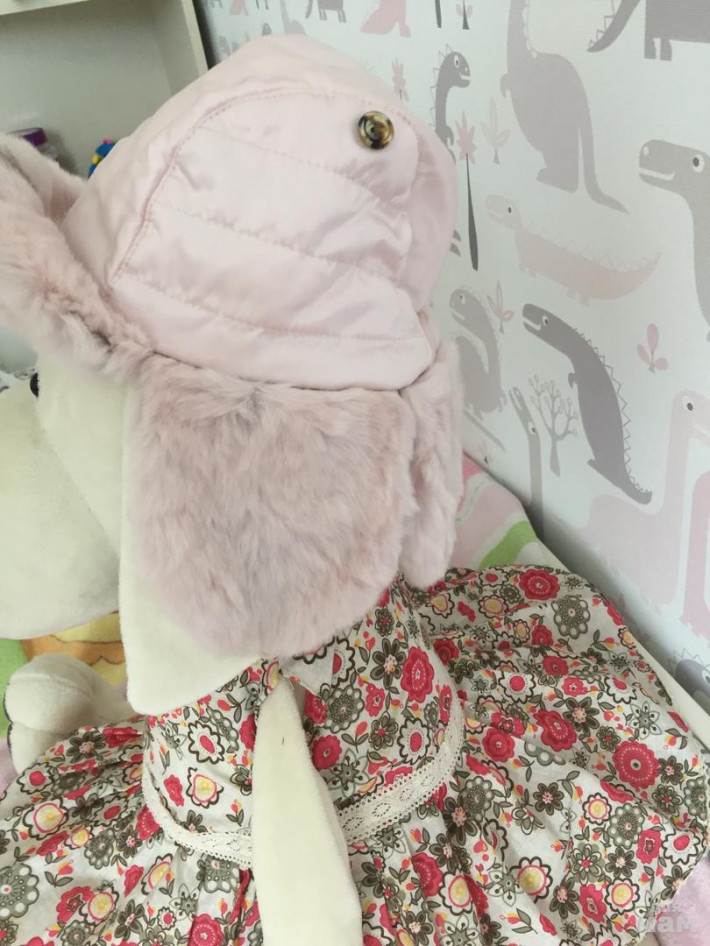 ДД! Она без застежки, ушки либо опускаются вниз, либо вверху фиксируются пуговками. Попробую одеть дочке, если получится фото кину позже. тк она нам впритык была.