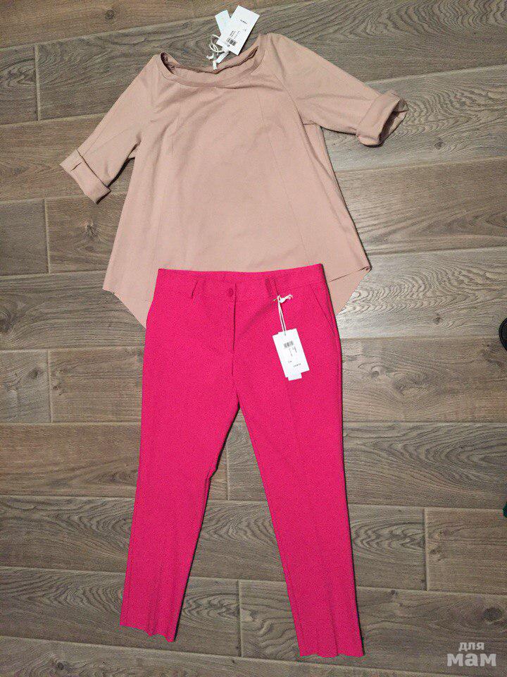 туника беж-пудра л, брюки фуксия м(хлопок)