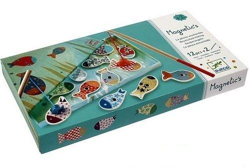 Рыбалка Djeco - это интереснейшая развивающая игра, в которой малышу от 2 лет придется ловить красочных рыбок игрушечной удочкой с большим магнитным безопасным крючком.