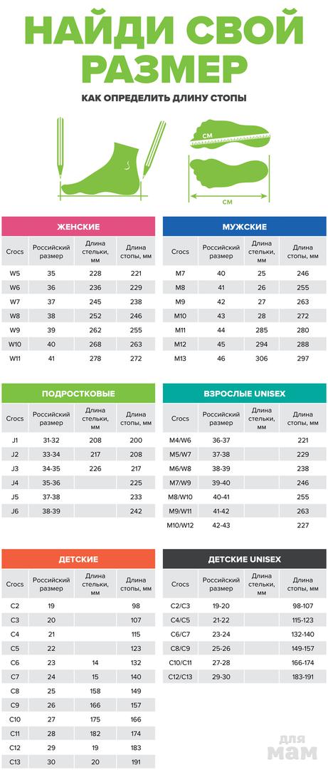 ДД,вот сетка Крокса . У ни всё чётко ( С13 внизу - Детские)