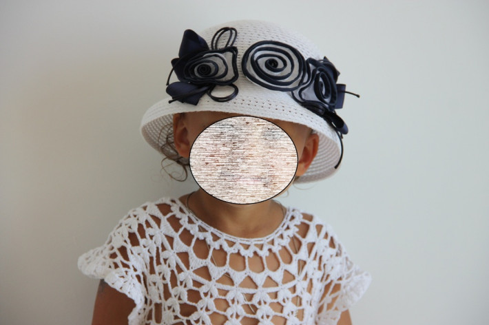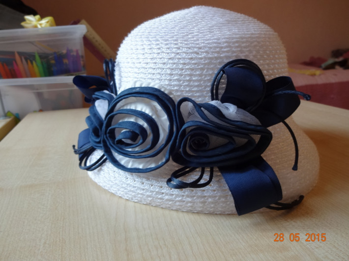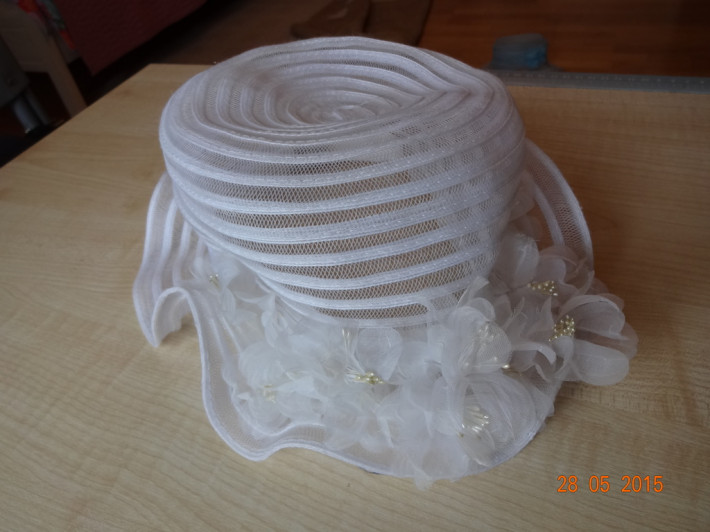 Нежная,легкая шляпка . Сидит очень хорошо,глубоко,от ветра не слетает.на голову 48-52см.