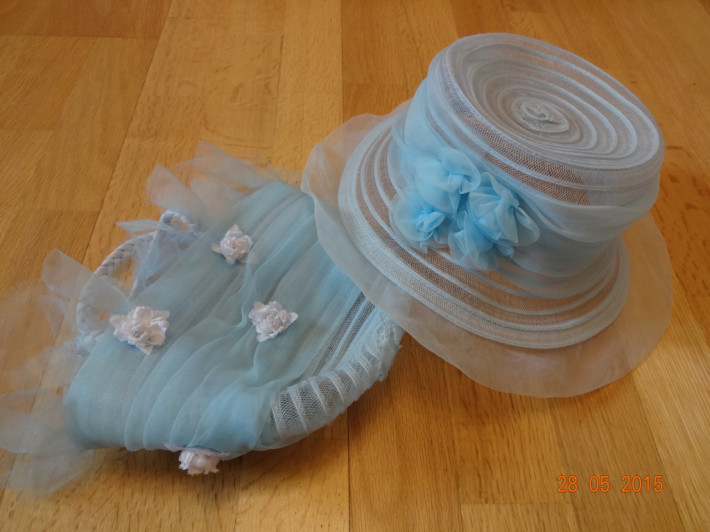 Нежный голубой комплект На голову 50-54см. Сидит очень хорошо! В Чемодане не мнется! 1500р