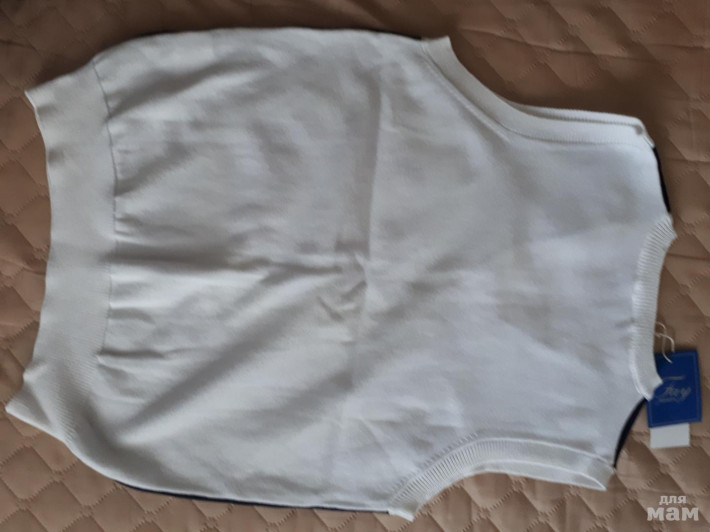 жилет, темно-синий спереди, сзади белый, мне кажется универсальный, как девочке, так и мальчику подойдет. Думала пригодится... 1000 руб.