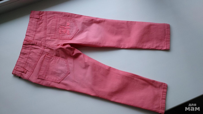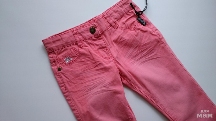 рючки кораллового цвета Люкс марка в Mothercare - Baby K. Очень красивые с эффектом потертостей, замятостей и вышивкой на кармане, все как у Мам ;)